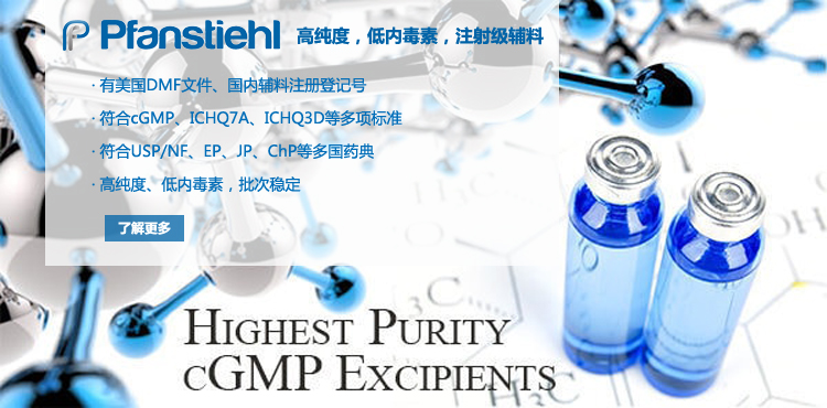 “熱烈祝賀Pfanstiehl的注射級甘氨酸Glycine(G-140)喜獲CDE登記號F20250000403, 這是Pfanstiehl產品獲得的第18個CDE登記號!”甘氨酸在醫藥輔料制劑中應用廣泛,, 可作為緩沖劑,增溶劑,穩定劑等,具有諸多優勢。Pfanstiehl秉承一貫高品質理念,為滿足全球生物制藥行業對于高品質甘氨酸的需求,隆重推出的注射級甘氨酸Glycine (G-140), 具有超高純度,超低內毒素,超低金屬殘留的特點,單獨檢測29種金屬離子,并且新增DNA,RNA,DNA酶,RNA酶和脂肪酶,亞硝酸鹽等多項質量指標的檢測,符合多國藥典規定(USP, EP, BP, JPE, ChP),可用于生物治療性藥物和疫苗的生產。產品信息:· 產品名稱:Glycine, High Purity, Low Endotoxin, Low Metals, USP, EP, BP, JPE, ChP (G-140)· 中文名稱:甘氨酸· 分子式:C2H5NO2· 分子量:75.07 g / mol· CAS號:56-40-6· 產品貨號:G-140產品特點: · 超高純度,超低內毒素,超低微生物含量,超低金屬雜質殘留· 質量指標新增DNA,RNA,DNA酶,RNA酶,脂肪酶和亞硝酸鹽檢測· 符合多國藥典:USP, EP, BP, JPE, ChP· 符合ICH Q3D標準· 符合GMP標準· 已獲DMF和CDE登記號 產品應用:· 緩沖劑· 穩定劑· 增溶劑如果您對Pfanstiehl注射級別Glycine G-140感興趣,歡迎聯系Pfanstiehl 中國區代理商北京西美杰科技有限公司獲得如下詳細的產品概況說明文件和測試樣品。Pfanstiehl Inc.最新產品系列如下,歡迎聯系北京西美杰科技有限公司獲取100g裝免費樣品。北京西美杰科技有限公司為Pfanstiehl中國代理,為客戶提供完善的技術支持與售后服務。歡迎撥打西美杰客服電話400-050-4006或者登陸網站www_xmjsci_com.lxoohf.pro了解更多信息。 更多>西美杰介紹